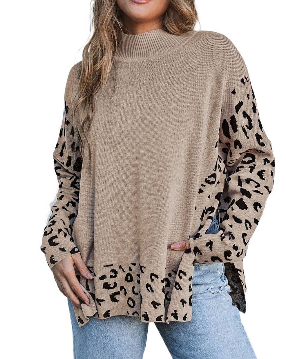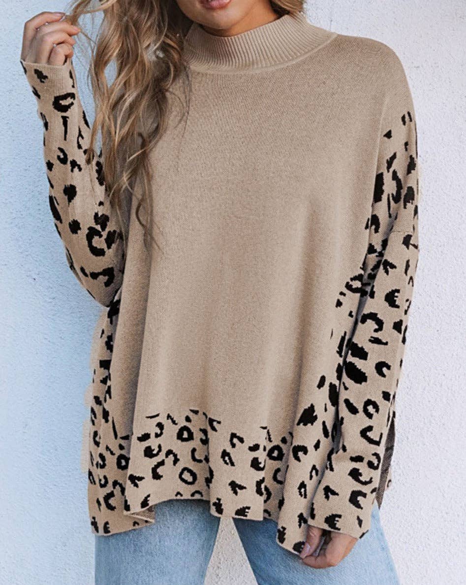 Leopard Mock Neck Oversized Sweater