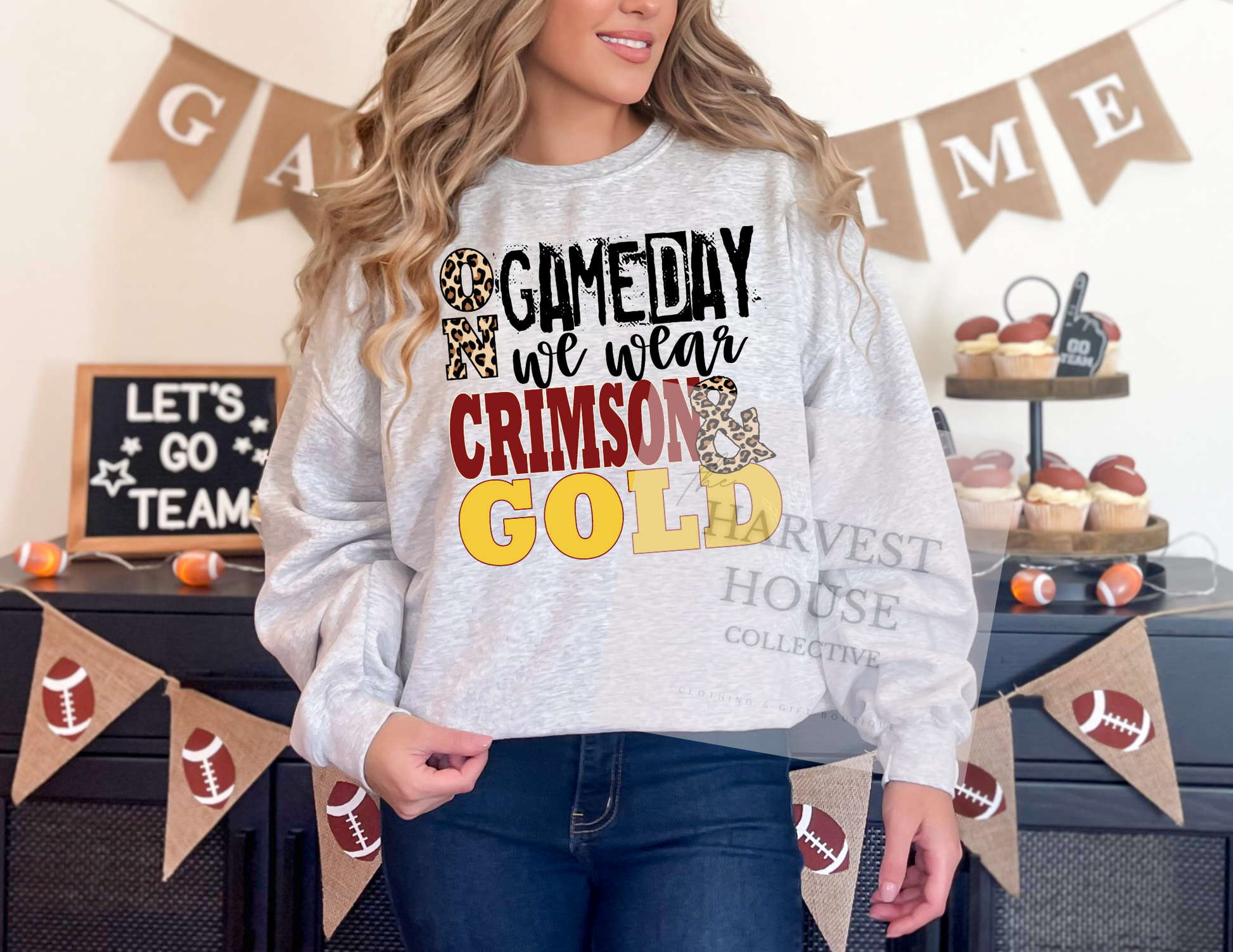 Show your team spirit with the On Gameday We Wear Crimson And Gold Shirt! Perfect for cheering on your school, this playful tee lets you proudly display your colors while having fun. Whether at the game or hanging out with friends, it’s a great way to unite and celebrate your team pride.