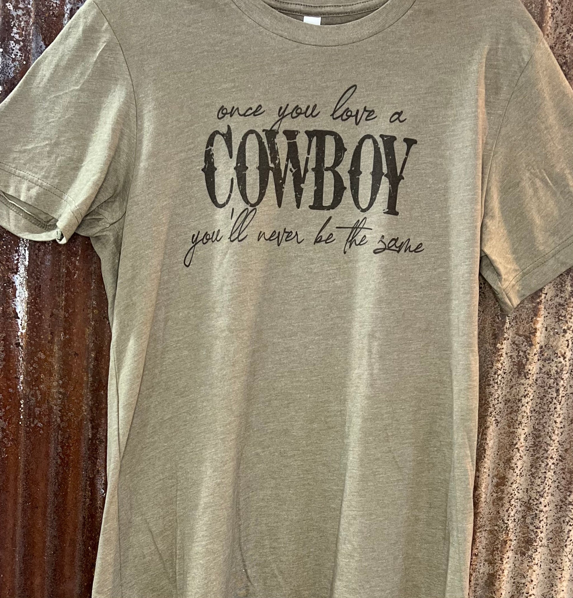 Fall head over heels for this Once You Love a Cowboy Shirt, featuring a charming heart graphic. Show your affection for cowboys and strike up conversations with fellow cowboy lovers. Perfect for adding a little love and humor to your wardrobe. Grab yours now!
